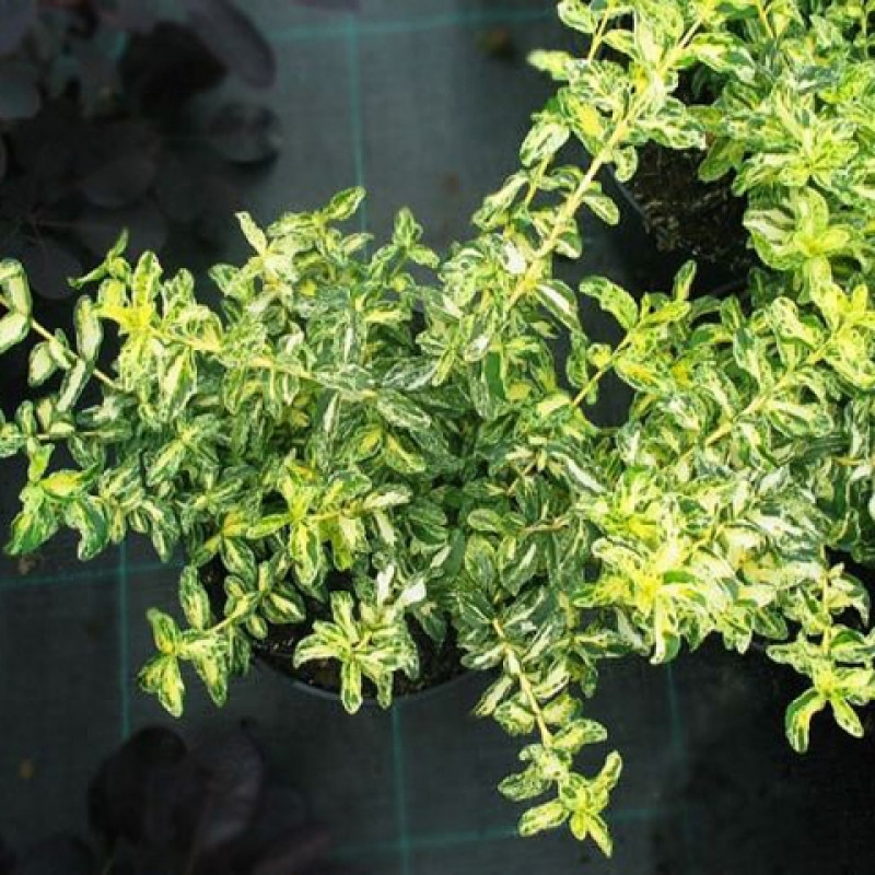 Саженцы Бересклета Форчуна Harlequin (Euonymus fortunei) – китайского вечнозеленый стелящийся кустарник высотой 30 сантиметров. Шириной около 3 метров сорт используется в почвопокровных целях. Растение устойчиво к морозу, непривередливо в уходе и не сбрасывает листву в Осеннего период. Саженцы комфортно чувствуют себя во влажной почве в долине или возле поймы реки. Отличным местом для посадки станет подлесок. В период цветения, который приходится на июнь месяц, Harlequin формирует компактные цветочки зеленовато-белого оттенка и яркие круглые плоды, непригодные в пищу. Декоративный кустарник подойдет для украшения садовых клумб и наполнения миксбордеров.