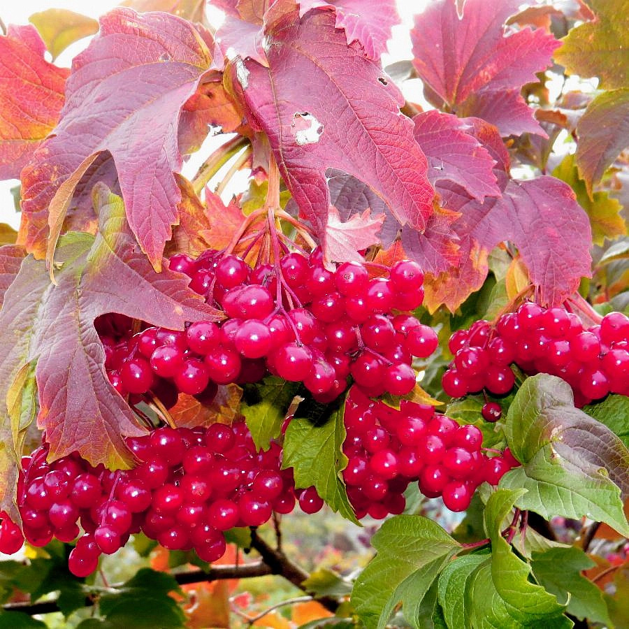Саженцы калины съедобной Гранатовый браслет (Viburnum opulus Granatovyj braslet) – сорт с поздним сроком созревания и крупными ягодами с приятным, немного горьковатым кисло-сладким вкусом.