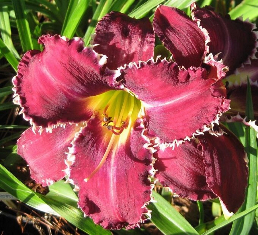 Лилейник гибридный снэггл тут - это великолепное растение с малиновыми цветками, украшенными сиреневым оттенком и белым кантом по гофрированному краю. Его зеленая листва весной создает яркий контраст с яркими цветами, а его высота до 100 см делает его идеальным для групповых посадок. Лилейник гибридный снэггл тут предпочитает солнечные места и суглинистые почвы, что делает его легким в уходе. Растение морозостойкое (зона 4), что позволяет выращивать его в большинстве регионов России.