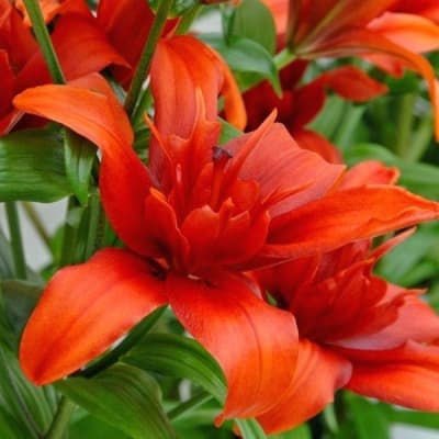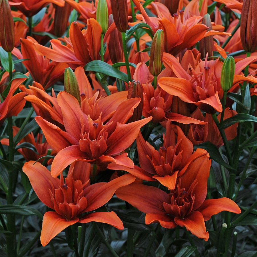Саженцы и рассада лилии азиатской махровой Ред Твин (Lilium) при минимальном уходе превратятся в высокие и пушистые цветущие кусты.