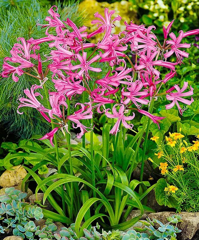 Луковицы нерине Боудена (Nerine Bowdenii) чаще используют как в комнатном цветоводстве, так и при оформлении сада или клумбы. Эти растения очень требовательны к температурному режиму и влажности. Поэтому при их высадке в грунт очень важно правильно подобрать место: хорошее освещение и достаточная влажность. При оптимальных условиях Нерина Боудена на протяжении всего года сохраняет буйную зелень, длина листьев достигает 20 сантиметров. Период цветения приходится на конец лета – осень, в некоторых регионах продолжается до начала декабря. Нерине Боудена отлично подходит для срезки, сохраняя декоративность соцветия в вазе до 4 недель.