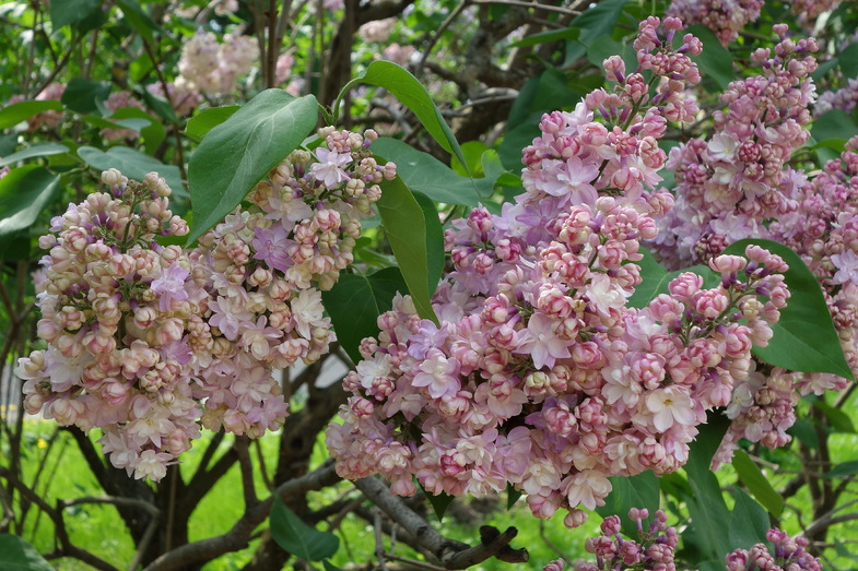 Саженцы Сирени обыкновенной Память о Вехове (Pamyat o Vekhove, Syringa vulgaris) являются лучшим сортом селекционера, чье имя она носит. Это компактный куст, который достигает 3 метров в высоту. Он имеет округлую крону, диаметр которой 1,5 метра. Сирень Память о Вехове очень красива, ее соцветия огромные, достигают 25 сантиметров. Цветки махровые, тесно расположенные друг к другу. Окрас довольно причудлив: из темно-фиолетового бутона распускаются розоватые цветки в конце мая-начале июня. Куст обильно цветет в открытом солнечном месте, не переносит тень. Не прихотлив в уходе: терпелив к засухам, хорошо зимует без укрытия. Лучше прорастает в нейтральной и щелочной почве.
