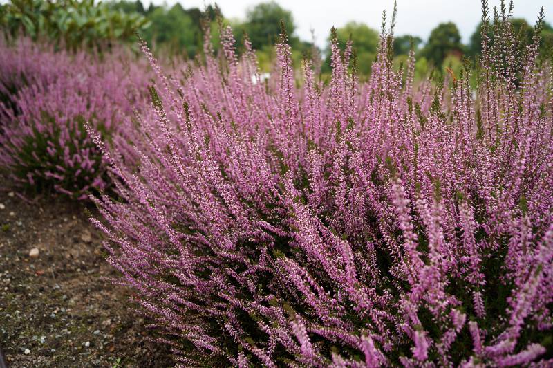 Саженцы Вереска обыкновенного Малин (Calluna vulgaris, Marleen) растут на солнечных участках альпинариев, миксбордеров, каменистых горок, рокариев. Многолетник эффектно смотрится в групповых и одиночных посадках. Высота взрослого куста не превышает 40 сантиметров. Цветы распускаются в конце лета и радуют своей красотой до первых осенних заморозков. Размер бутона не более 1 сантиметра. Розово-фиолетовые соцветия гармонируют с ярко-зеленой листвой. Вереск не привередлив к почвам, поскольку в естественных условиях растет на бедных песчаных грунтах. Переносит зимовку без укрытия.