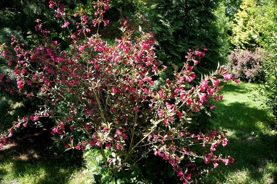 Саженцы вейгелы цветущей Nana Purpurea имеют такие плюсы: